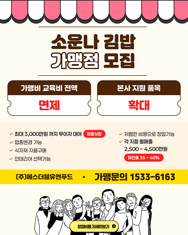 언제, 어디서든 접할 수 있는 키토김밥 전문점이 되도록 꾸준하게 노력하겠습니다.